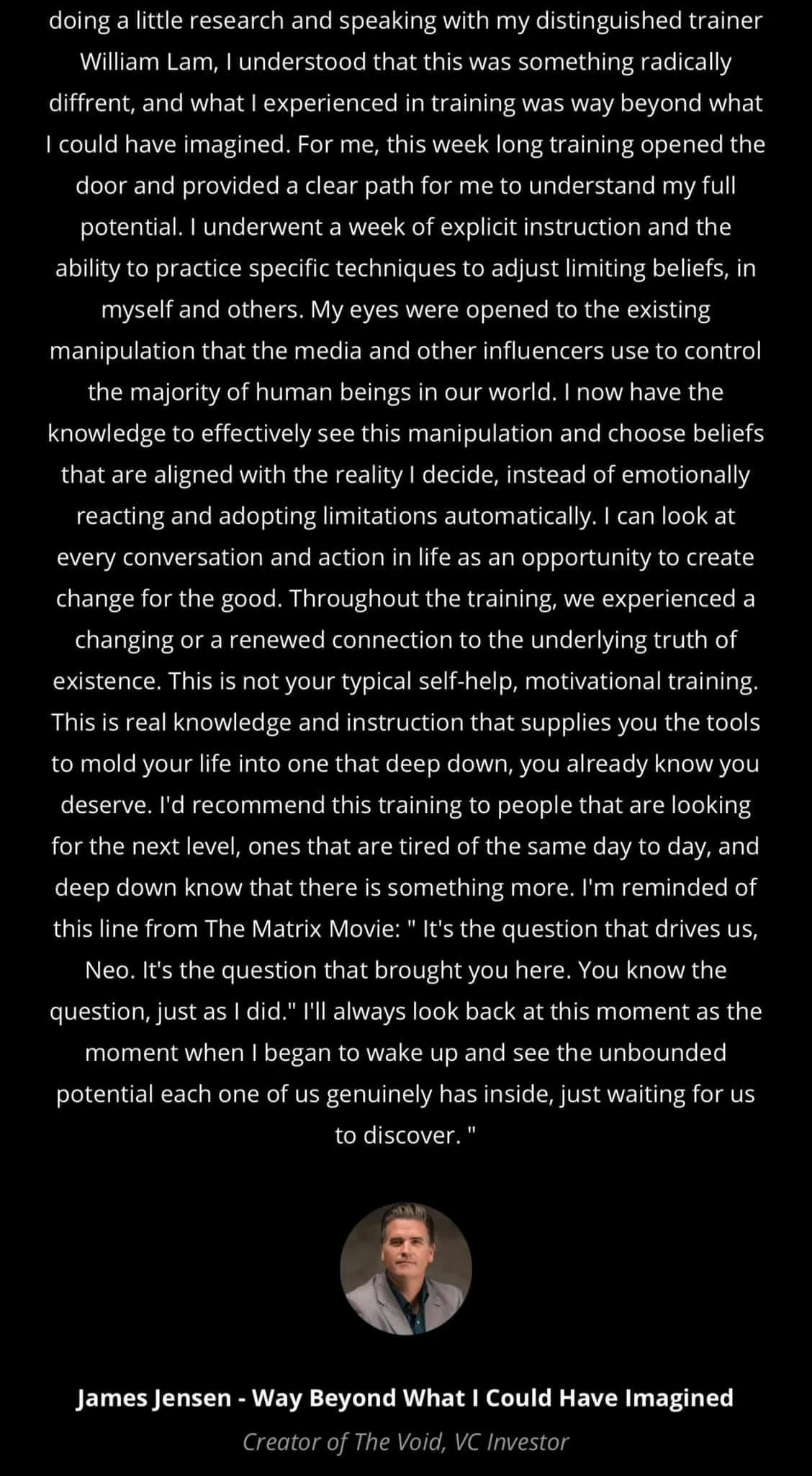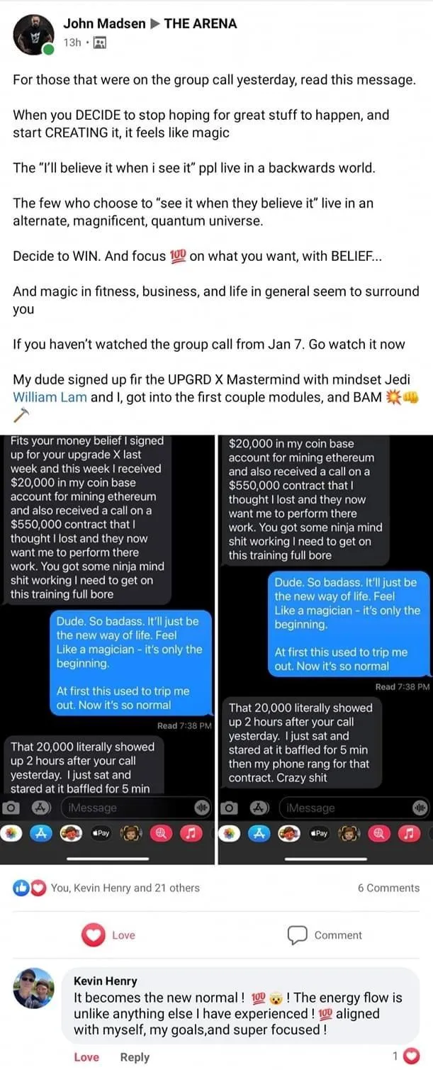 You’ll also experience some of the most powerful reprogramming of your limiting beliefs to shatter them from existence by Master Practitioner William Lam.